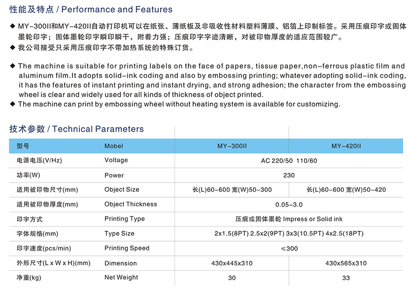 MY-420II壓痕或固體墨輪打碼機(jī)